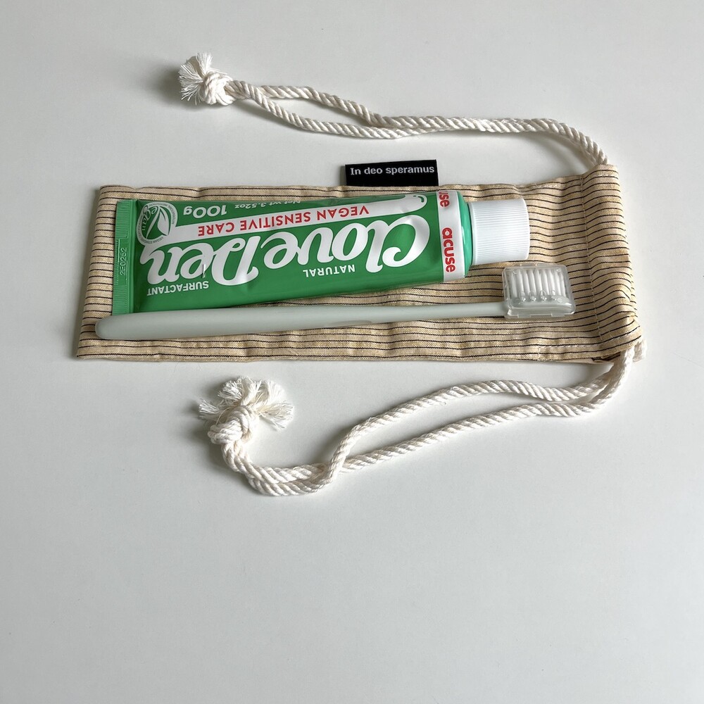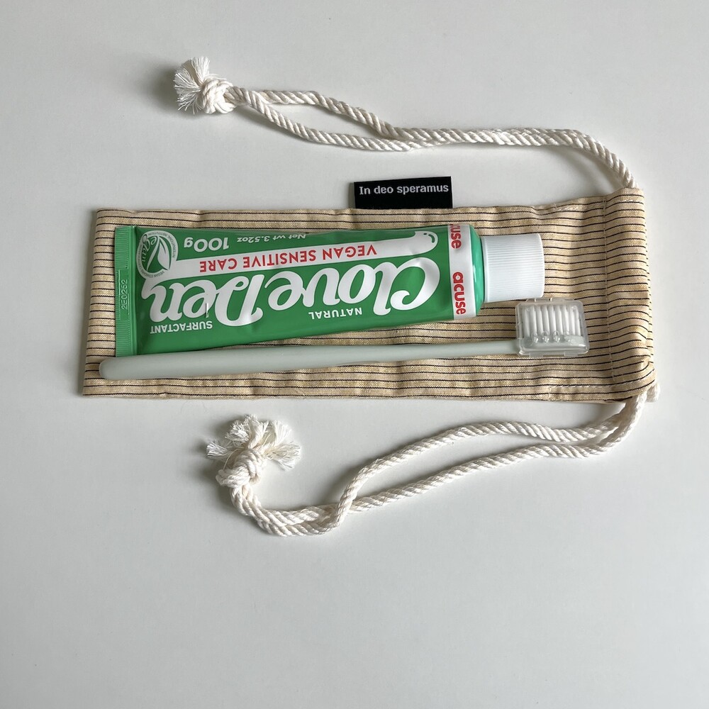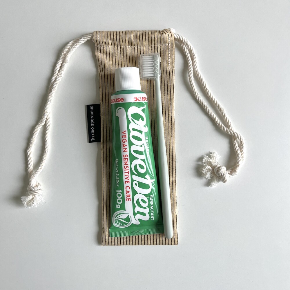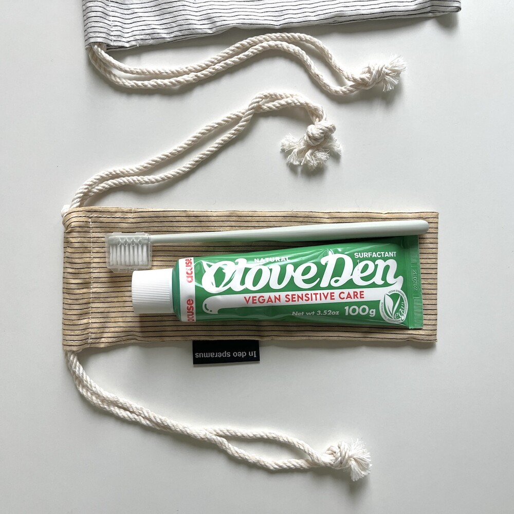 플라스틱 칫솔 케이스를 대체하고자 제작된 면 칫솔 케이스입니다.