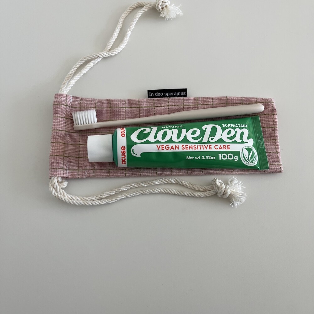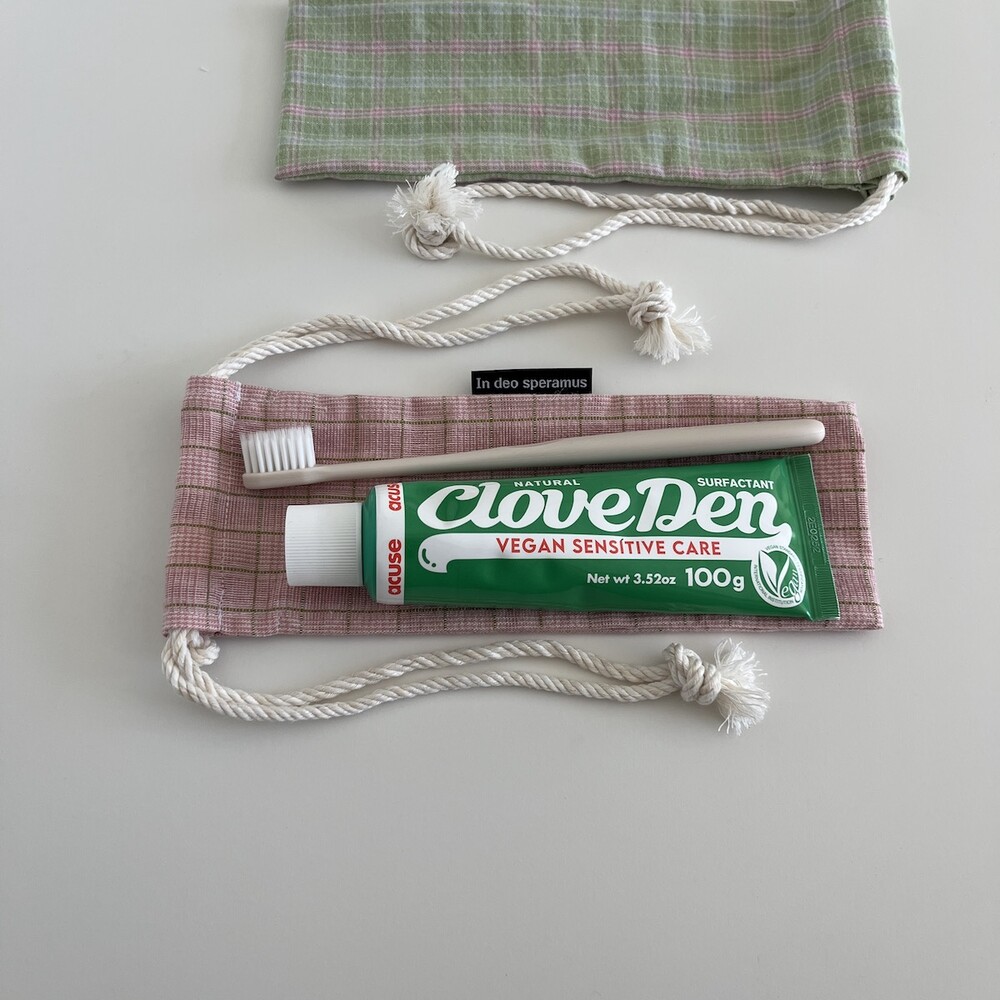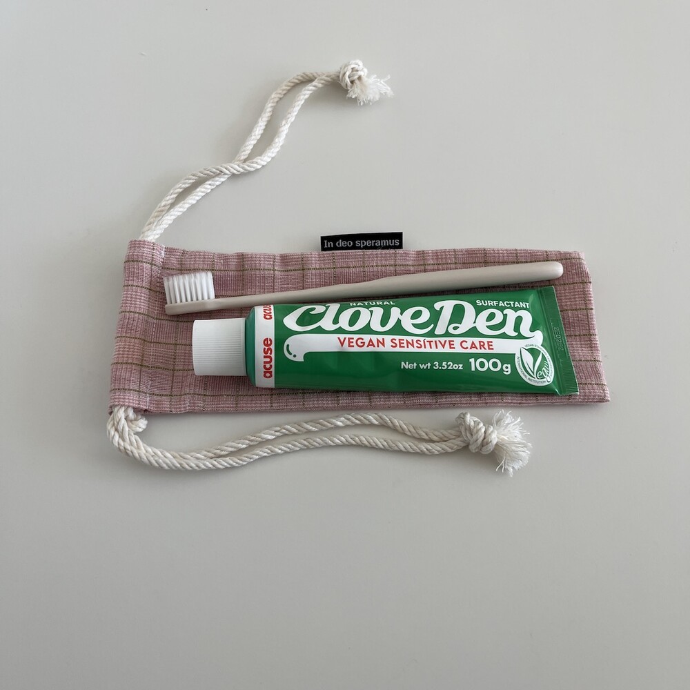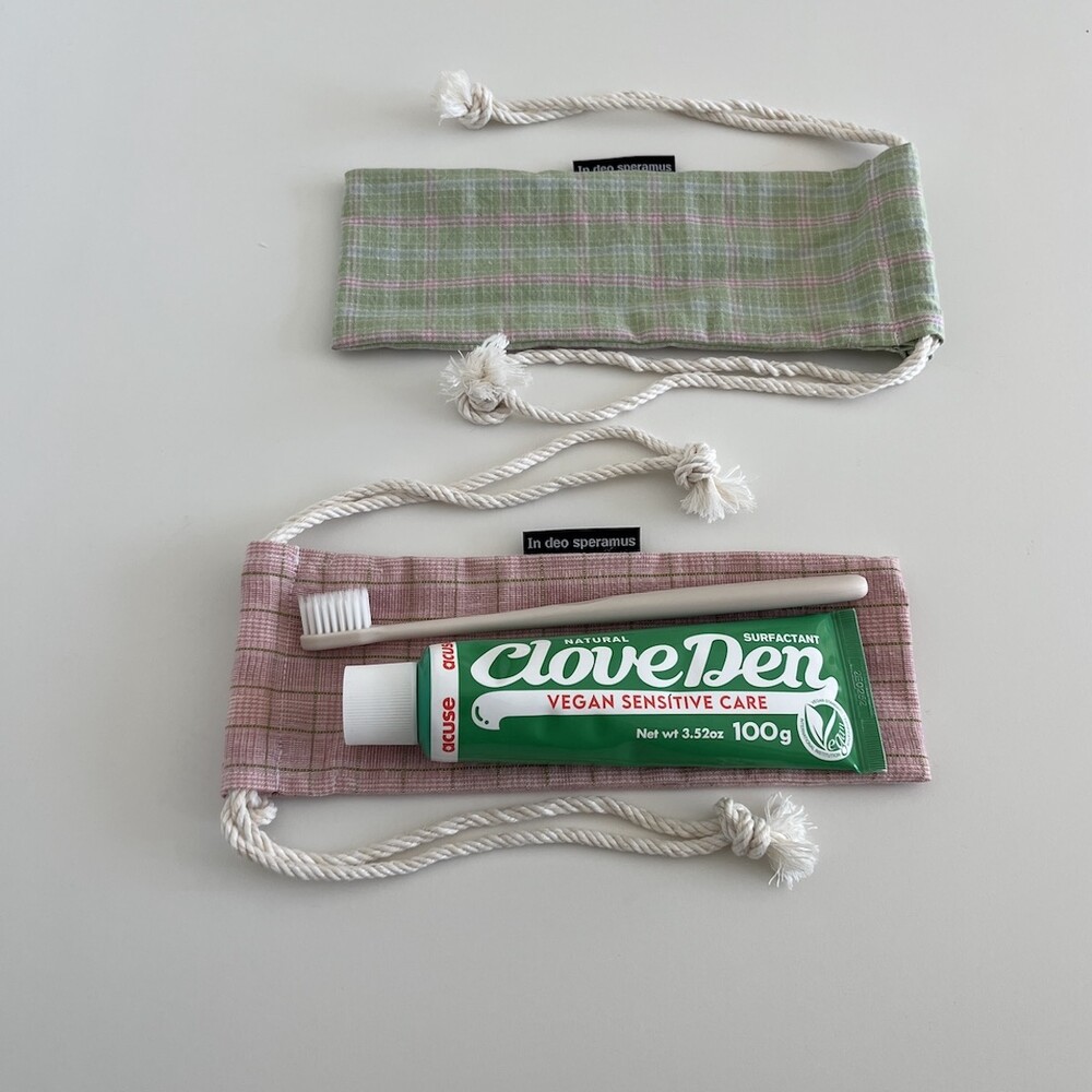 플라스틱 칫솔 케이스를 대체하고자 제작된 면 칫솔 케이스입니다.