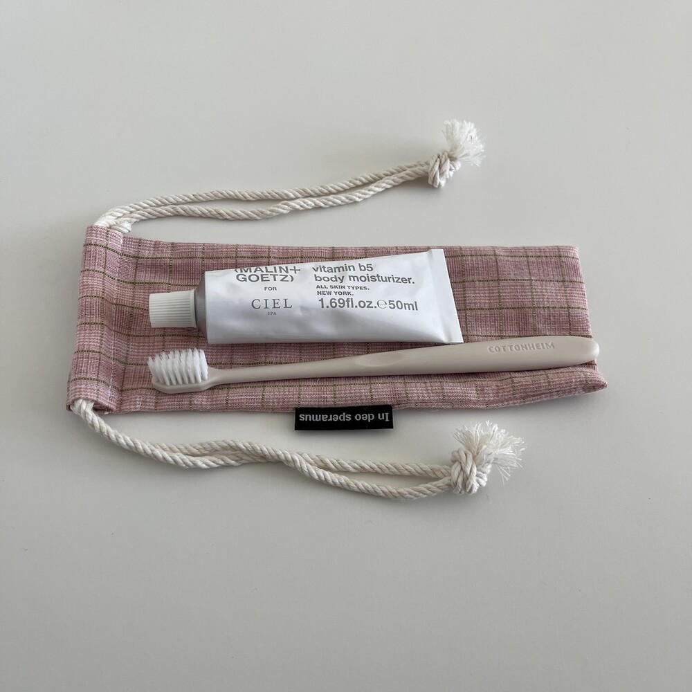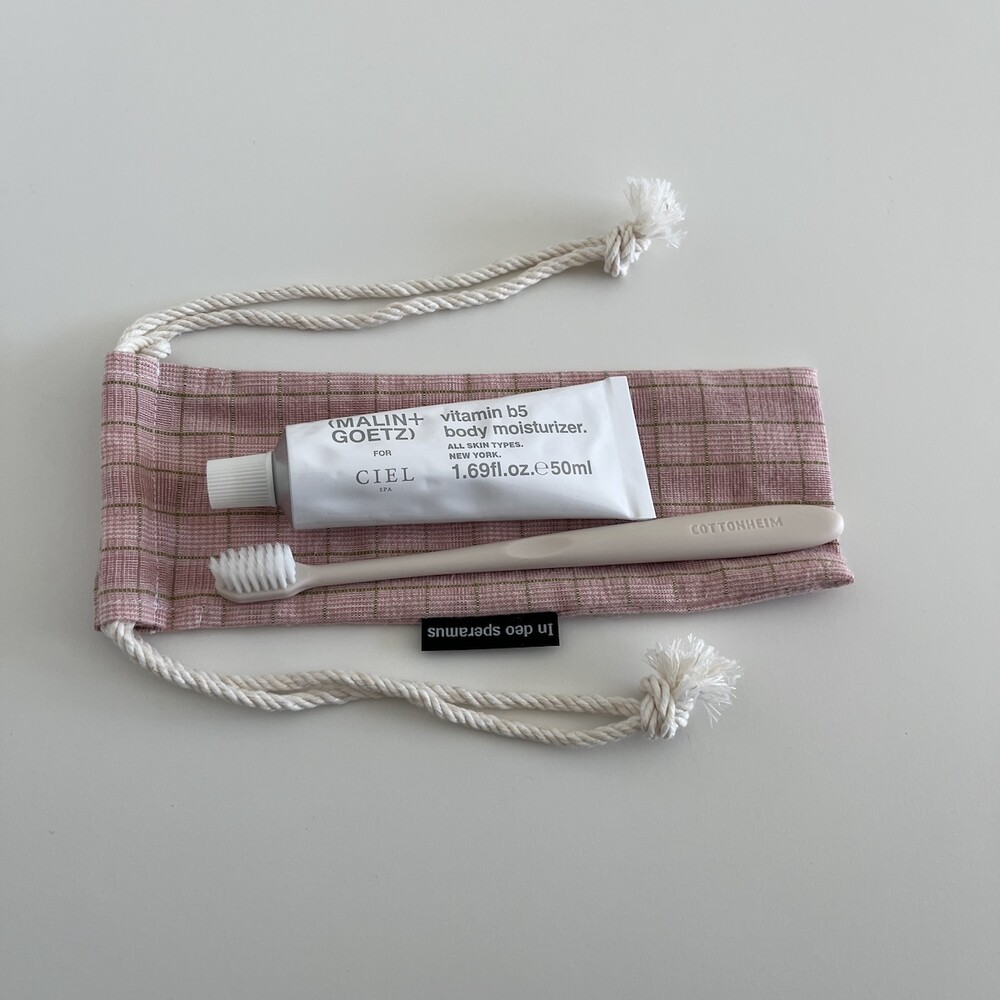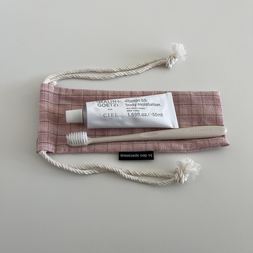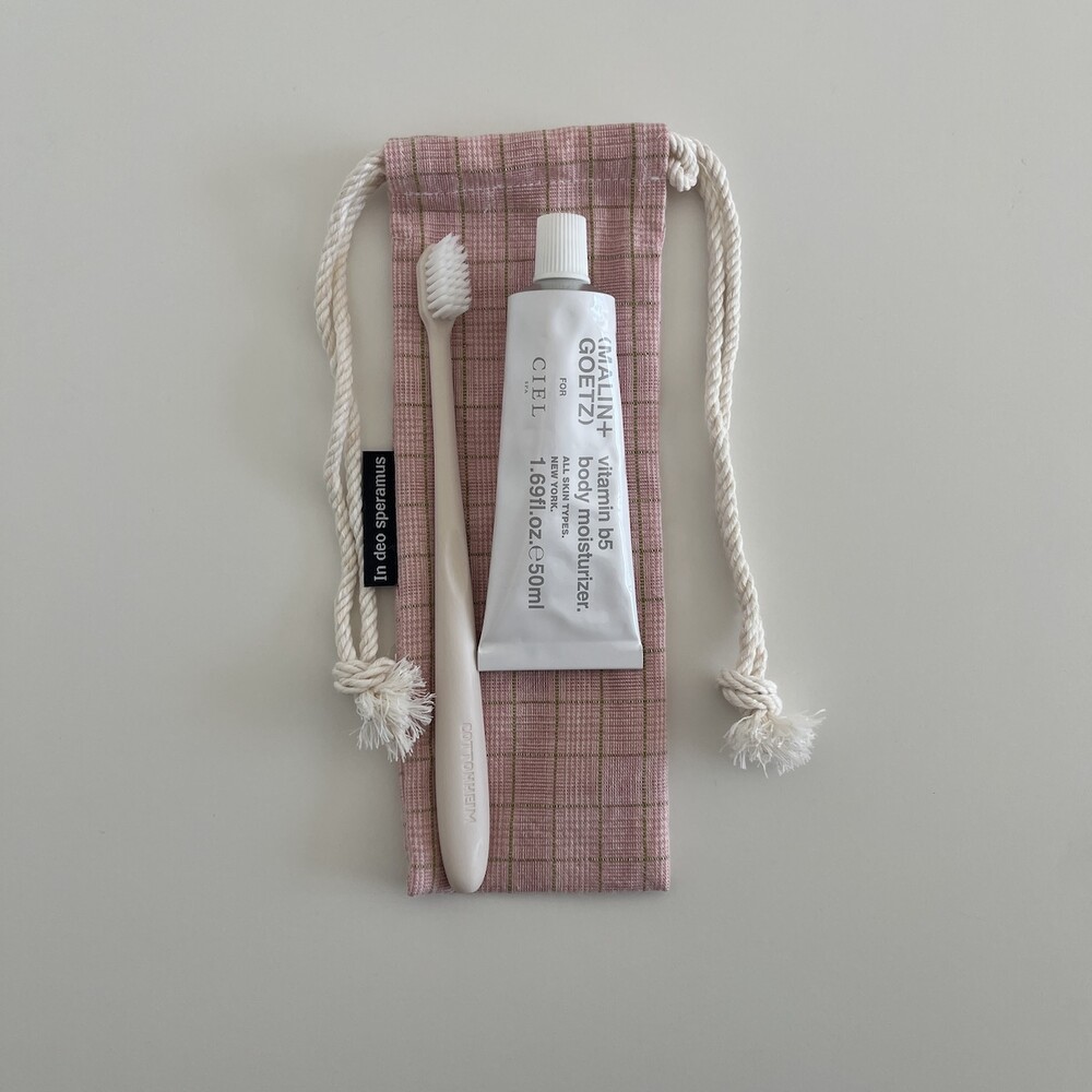 플라스틱 칫솔 케이스를 대체하고자 제작된 면 칫솔 케이스입니다.