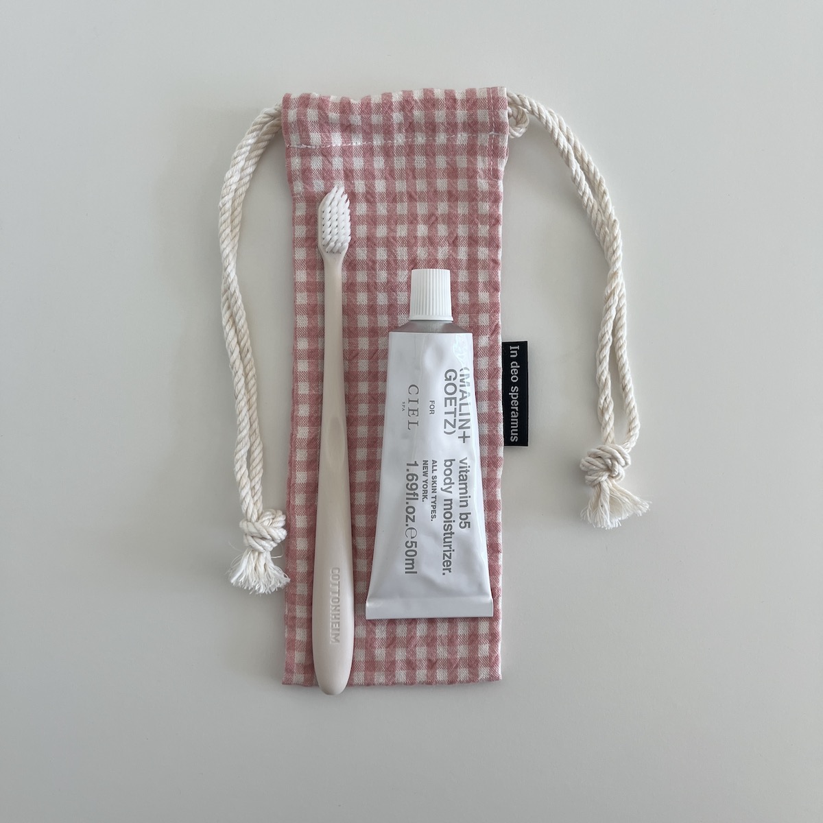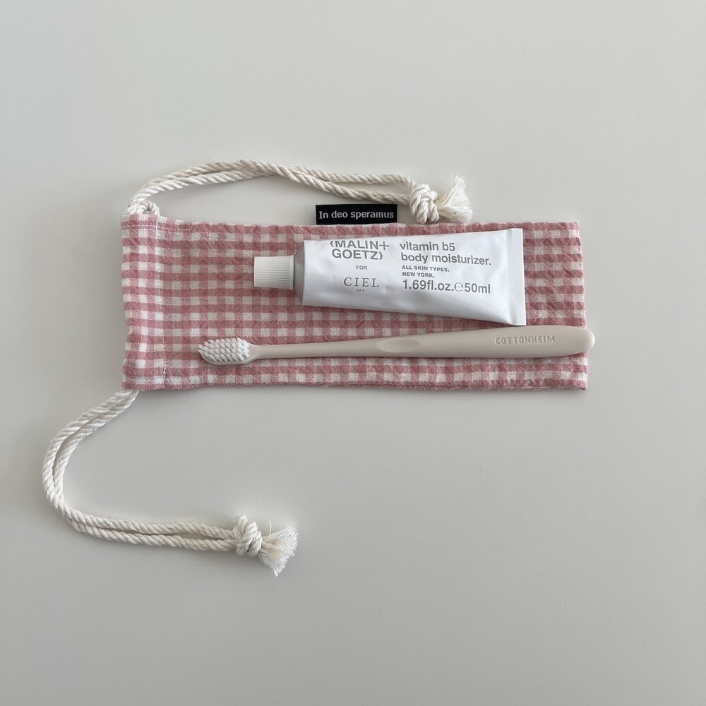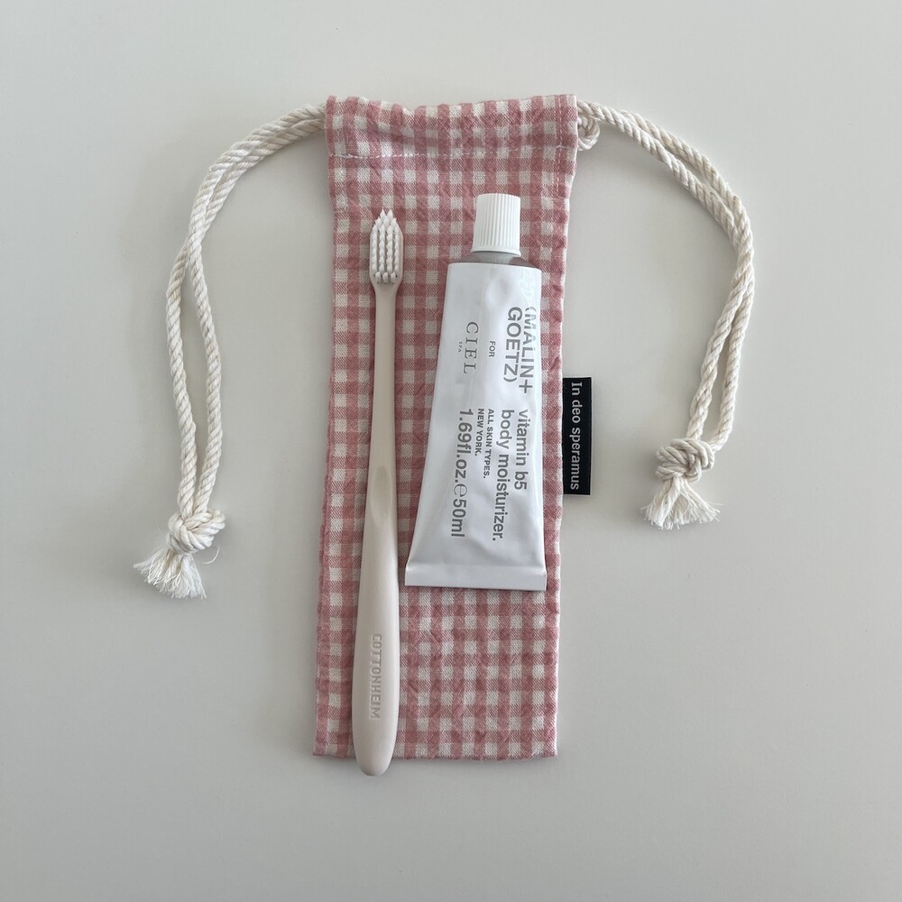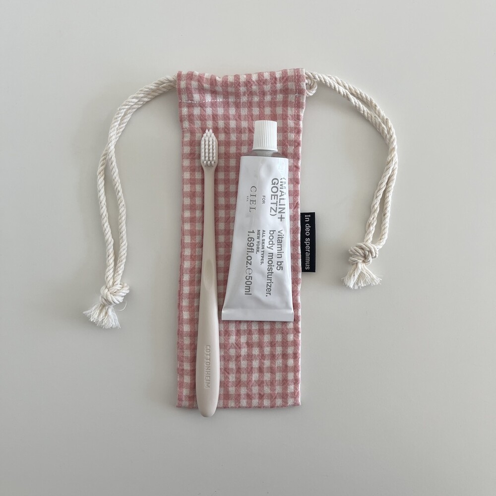 플라스틱 칫솔 케이스를 대체하고자 제작된 면 칫솔 케이스입니다.