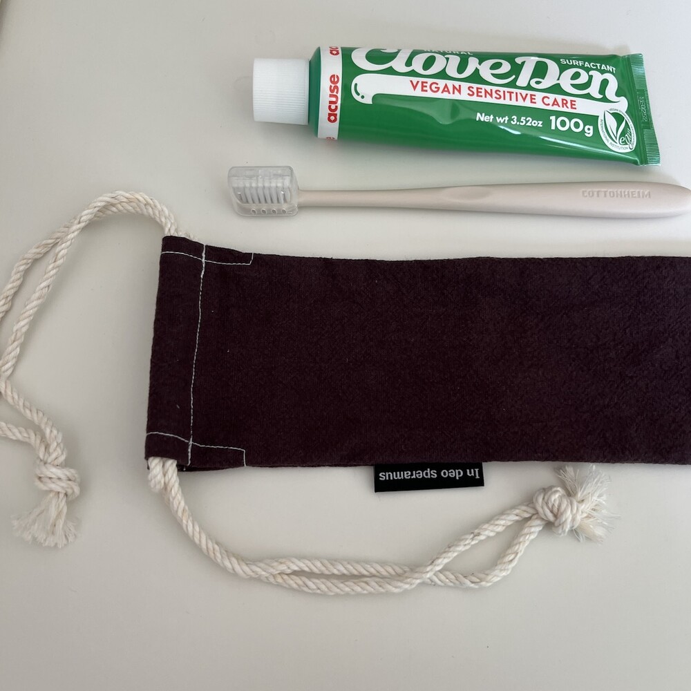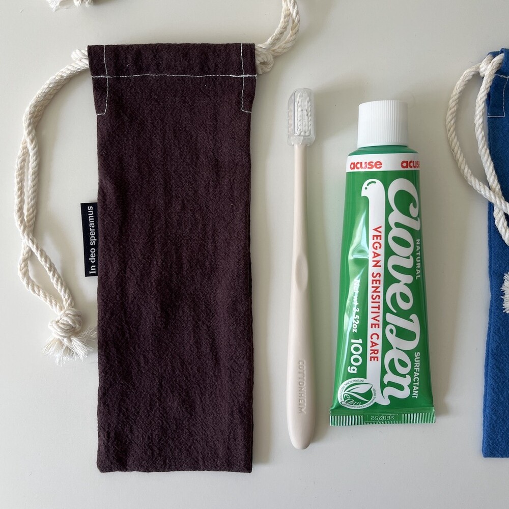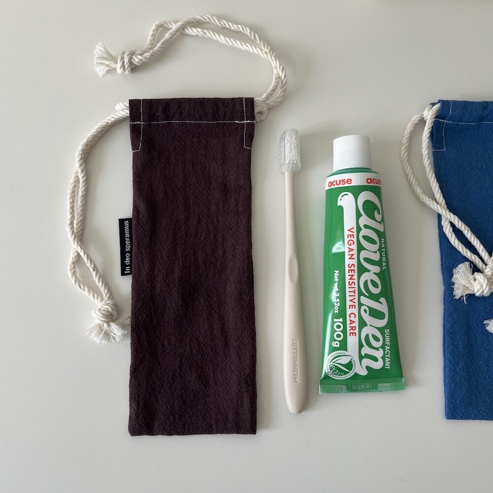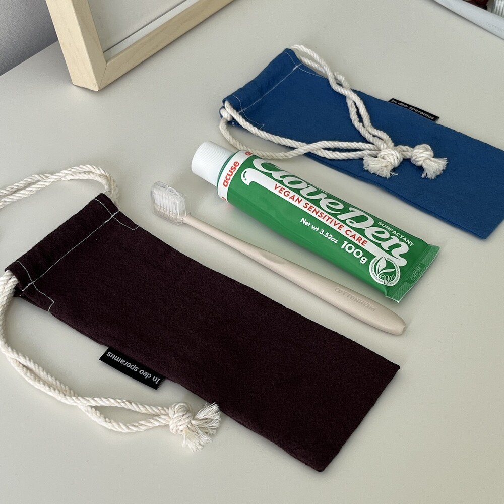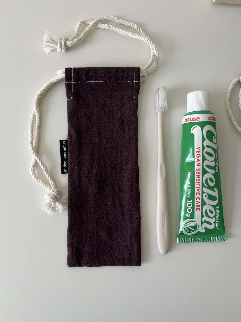 플라스틱 칫솔 케이스를 대체하고자 제작된 면 칫솔 케이스입니다.
